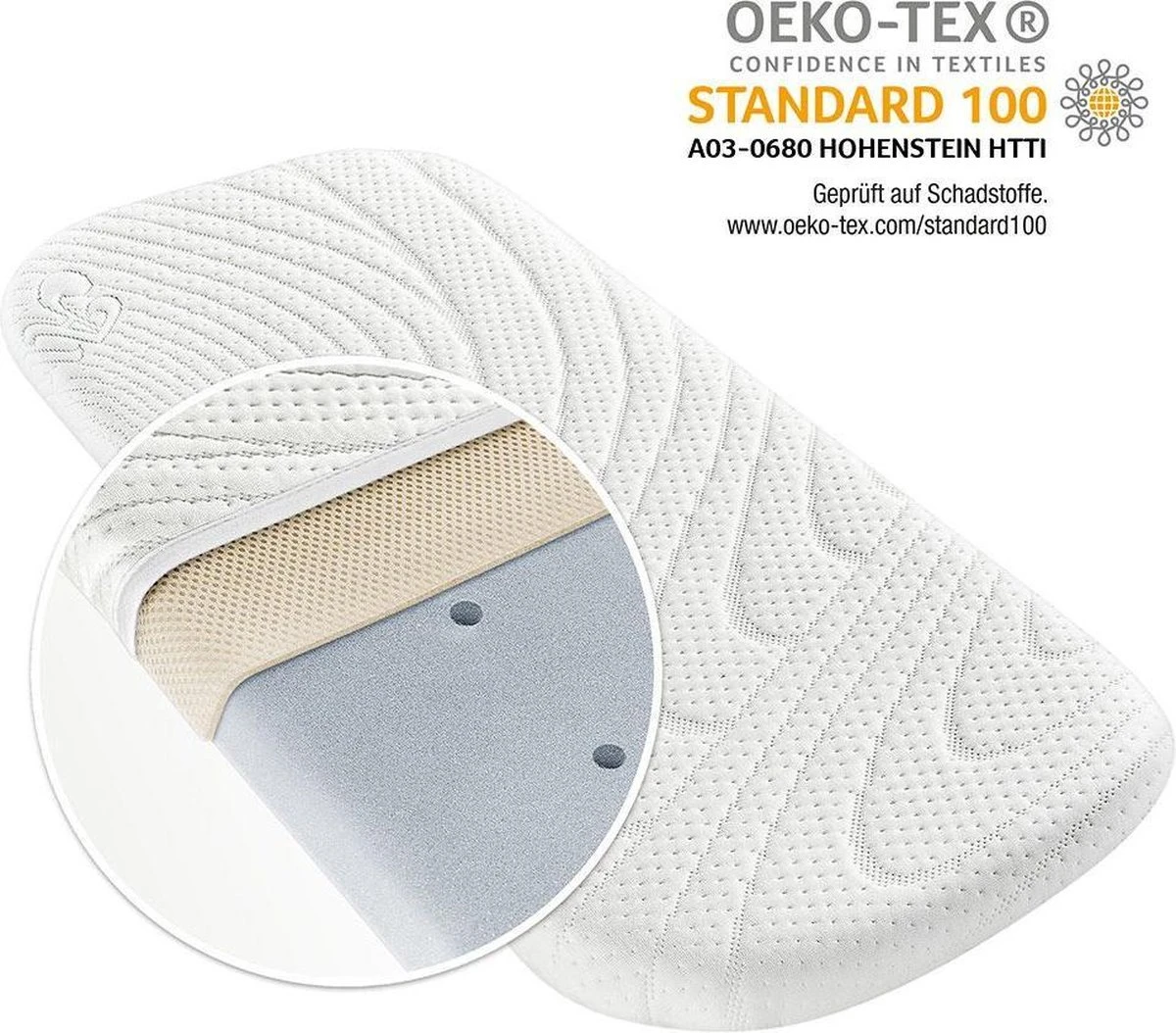 - Gezond slapen – dankzij de ademende babymatras voor kinderwagens en reiswiegen. Het uit 3 lagen bestaande schuimmatras biedt uitstekende ondersteuning voor het hoofd, rug en nek van je pasgeborene.