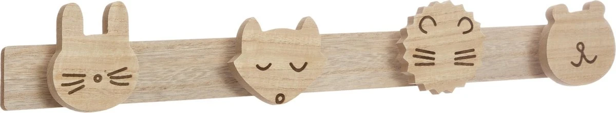 Alle kinderen zullen dol zijn op deze super leuke kapstok met 4 verchillende dierenkoppen. Een geweldige toevoeging voor de kinderkamer of voor in de hal, zodat kinderen zelf hun jas kunnen ophangen.