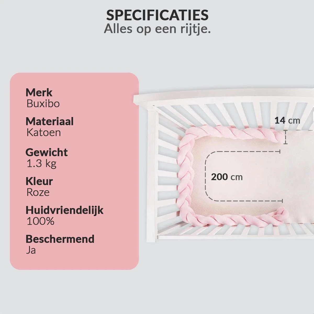 Buxibo Baby Bed Bumper – Baby Veiligheid/Hoofdbescherming/Bedbescherming – Multifunctionele Voedingskussen/Bedomrande/Boxomrander – 200CM – Roze