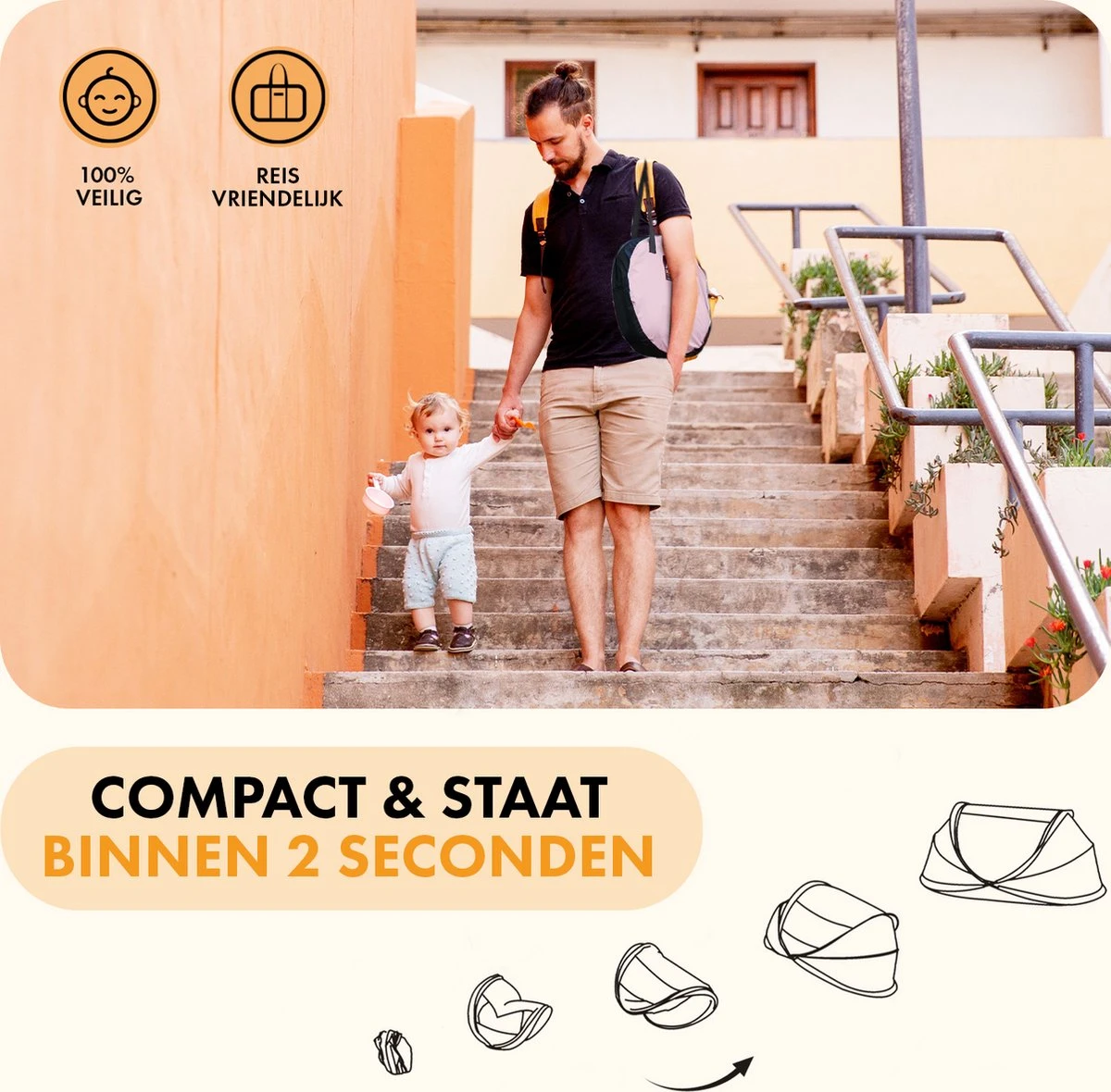 Laat je niets meer in de weg staan met deze compacte, lichtgewicht & pop-up reistent. De Deryan Baby Luxe biedt een ultieme bescherming tegen zon, muggen en andere insecten. Met zijn 1,8 kg neem je hem in een handomdraai mee naar ouders, familie, vrienden, vakantie of de wereldreis van je dromen! Ondenkbaar veel mogelijkheden!