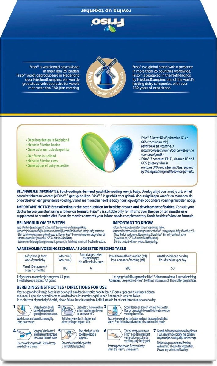 - Friso 3 opvolgmelk is geschikt als onderdeel van een gevarieerde voeding.