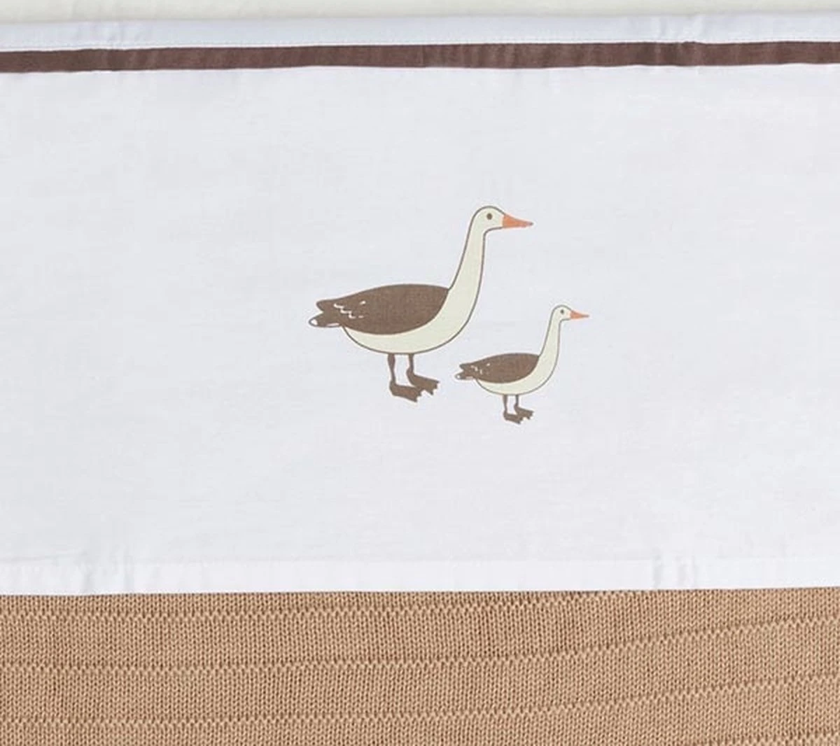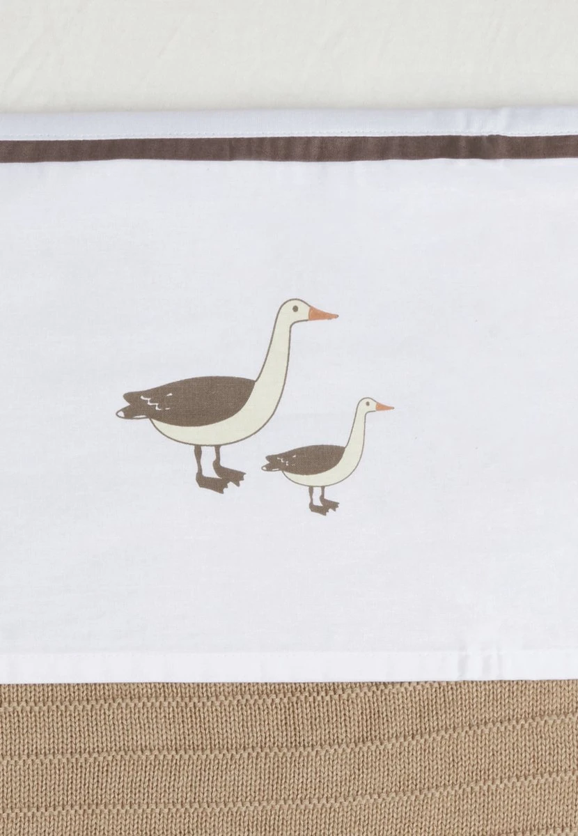 Ledikant lakentje met schattige gansjes. De zijkanten van het lakentje kun je onder het matrasje stoppen voor een extra veilig en geborgen gevoel. Je matcht dit lakentje met het schattige slaapzakje met gansjes. Style de kamer helemaal af met een biscuit kleurig hoeslaken en een klamboe in de matchende kleur.