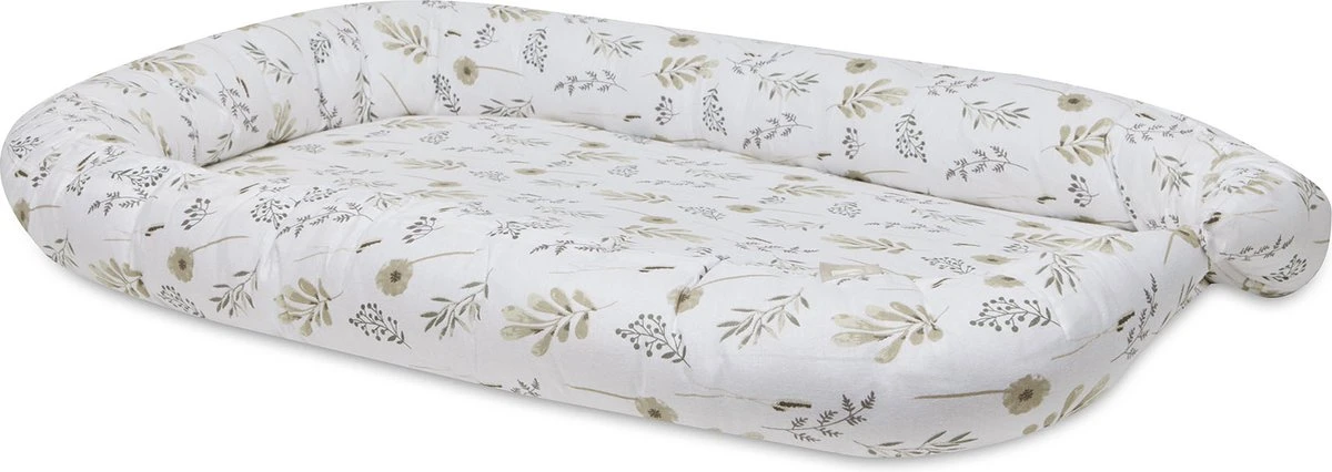 Droom maar fijn, lief kleintje! Je baby ligt heerlijk in dit babynestje met hippe Wild Flowers print De opstaande gewatteerde rand geeft jouw baby een veilig en geborgen gevoel. Met zo’n nestje ligt je baby gezellig bij je op de bank of knus in de box. Het is heel handig om mee te nemen als je op pad gaat. Zo kan je jouw baby overal makkelijk wegleggen op een comfortabel plekje zonder dat je baby wegrolt. Dit babynestje is ook super leuk om als (kraam) cadeau te geven.Kleur Deze dromerige Wild Flowers print matcht bij vrijwel iedere babykamer. Ontdek ook onze andere items met de super leuke Wildflower print.