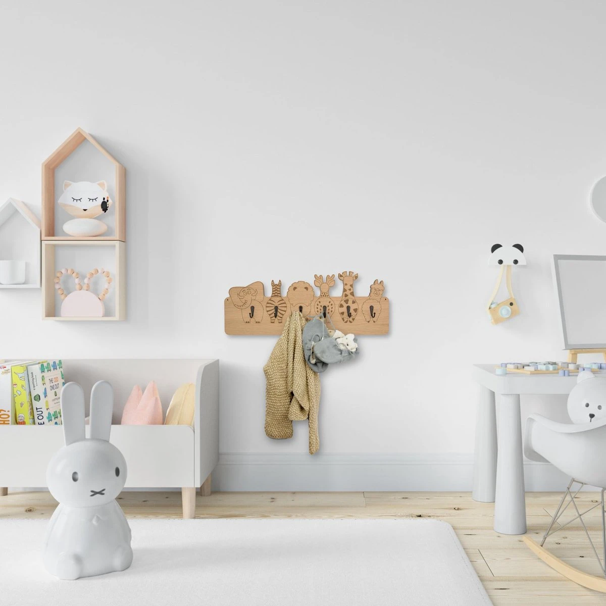 Met behulp van hun eigen kapstok met wilde dieren, leren je kinderen hun eigen spullen opruimen op een leuke manier.