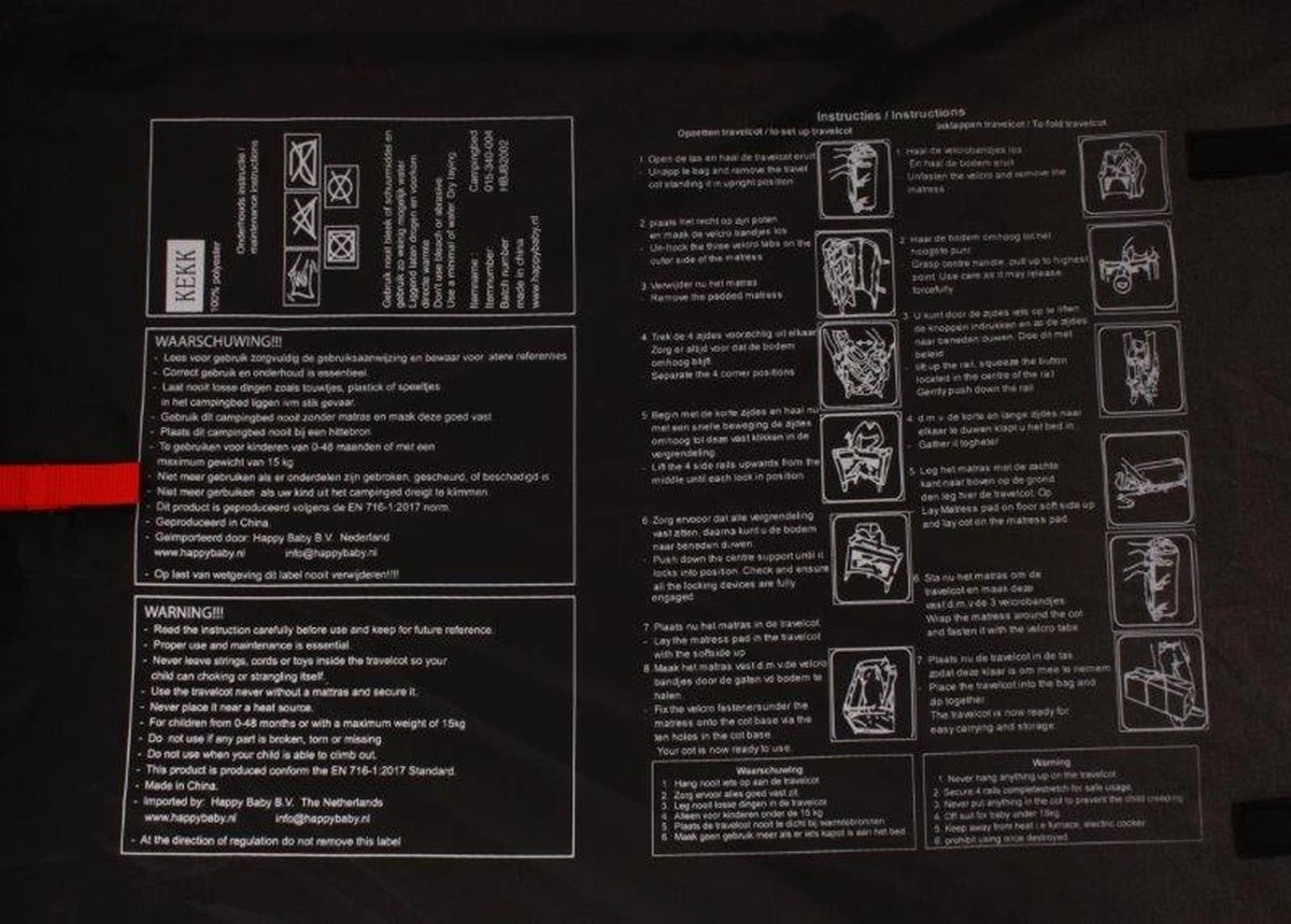Kekk Campingbed Reisbed Voor Baby Zwart Compact Opvouwbaar Incl Matras 60 X 120 Cm