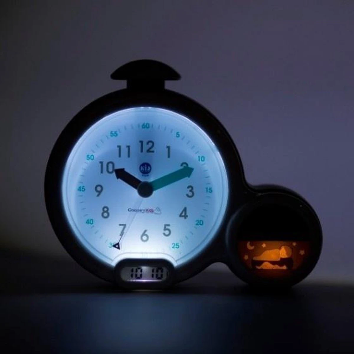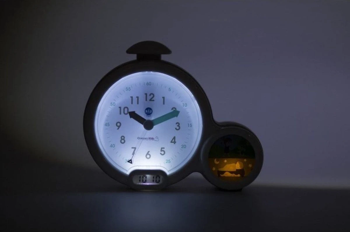 Het werkt heel eenvoudig: het klokje heeft 2 plaatjes, één een kind dat buiten speelt en één van een kind dat lekker in zijn bedje ligt te slapen. Afhankelijk van de instellingen brandt er een lampje achter één van de plaatjes. Als je kind wakker wordt hoeft hij/zij alleen maar naar de vrolijke wekker te kijken om te kijken welk plaatje verlicht is. Zo weet je kind meteen of het al tijd is om uit bed te komen. De omgekeerde wijzer van de klok geeft ook aan hoe lang het nog duurt totdat het tijd is om op te staan.