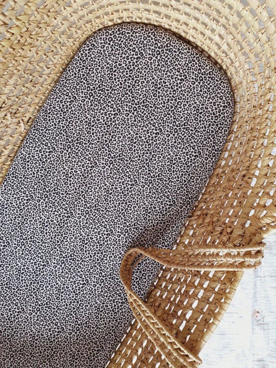 Leuke kinderwagen/wieg hoeslaken panterprint met subtiele oud roze kleur.