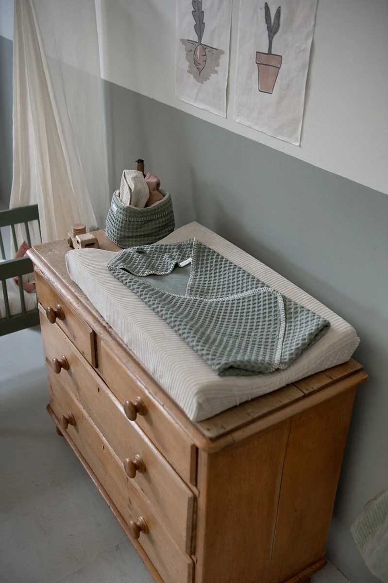 De Koeka omslagdoek met capuchon is met stretch badstof gevoerd en gebruik je om je baby in te wikkelen. Deze omslagdoek is voorzien van een opening zodat de doek ook met de gordels van de auto- of wipstoel gebruikt kan worden. Zo blijft je kleintje altijd comfortabel warm, zowel in huis als onderweg. De omslagdoek is ook fijn om te gebruiken tijdens het voeden en door de badstof voering kan je deze doek ook gebruiken om je kleintje mee afdrogen na het bad. Met de ophanglus hangt de doek altijd binnen handbereik in de bad- of babykamer.