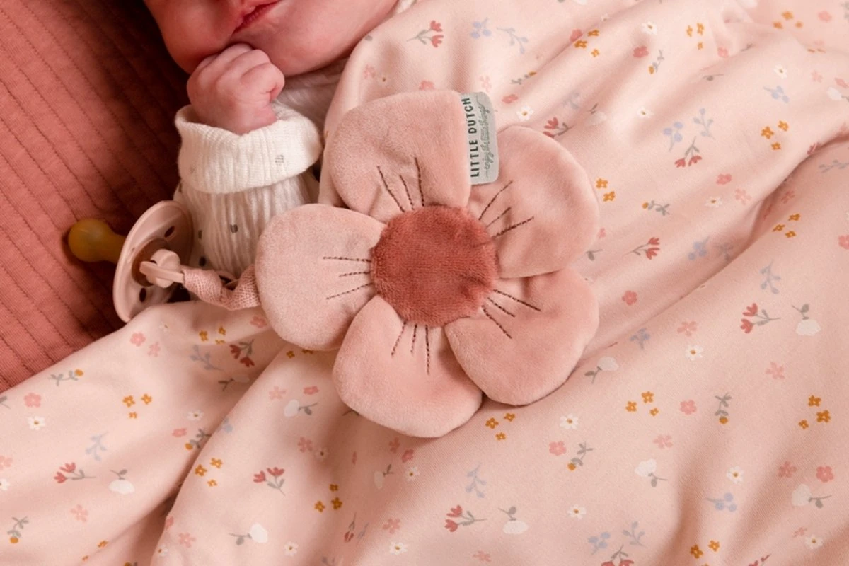 Groei en bloei. Dit speendoekje van Little Dutch is uitgevoerd in een zachte tint en houdt de bijtring of speen van jouw kindje schoon en binnen handbereik. Geïnspireerd door ons nieuwste thema, heeft het doekje de vorm van een bloem. Bevestig de speen of bijtring aan de katoenen lus en je raakt hem niet meer kwijt. Het superzachte doekje doet ook dienst als knuffeltje en helpt je kleintje rustig in slaap te vallen. Of je nu thuis bent of onderweg. Vanaf de geboorte.