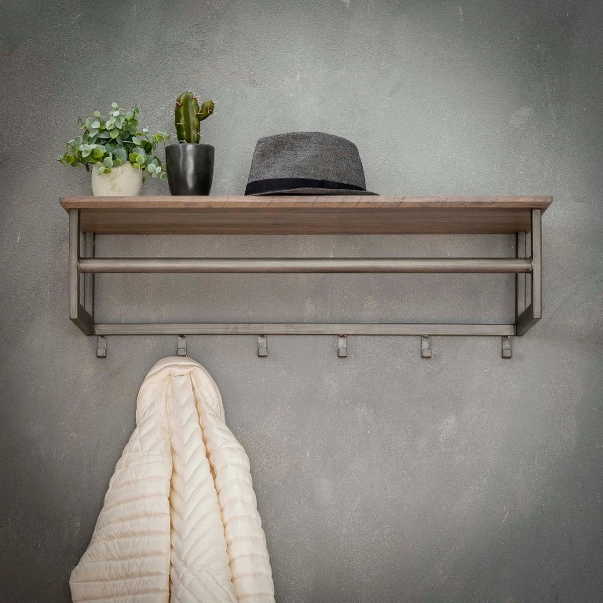 Deze kapstok is gemaakt van Medium-Density fiberboard (MDF) met een afwerking van eiken greywash. De decorlaag heeft een prachtige 3D-structuur waardoor het precies lijkt op echt hout. De kapstok bevat een roede, haakjes en een hoedenplank. De haken hebben een uitvoering van staal en zijn grijs gepoedercoat. Jassen kunnen aan een haak of hanger worden opgehangen. De hoedenplank biedt ook veel verschillende opbergmogelijkheden. De kapstok is eenvoudig aan de wand te monteren door de twee bevestiginsogen aan de achterzijde.