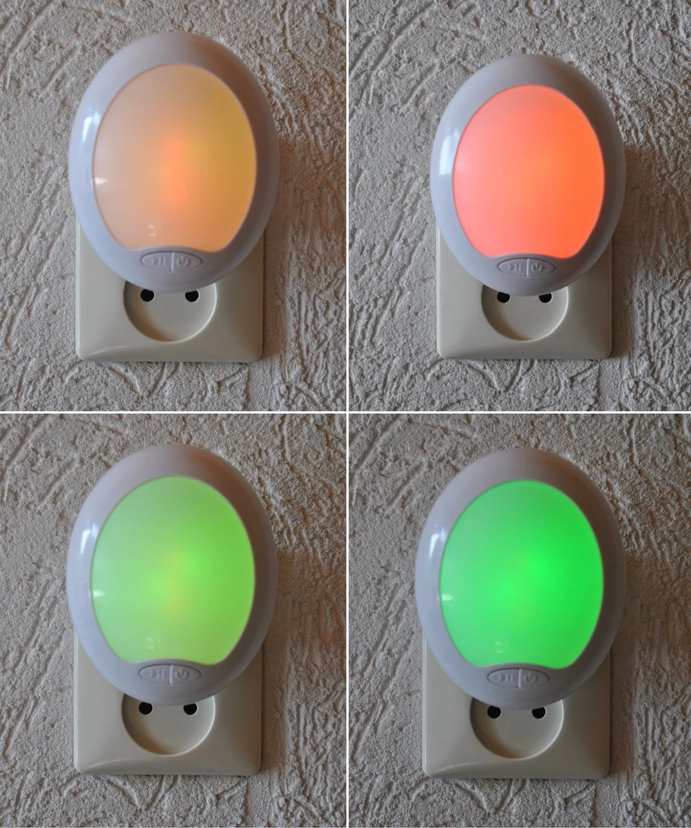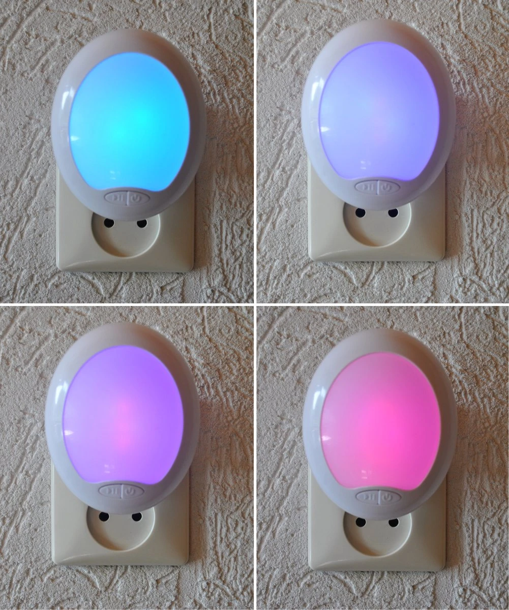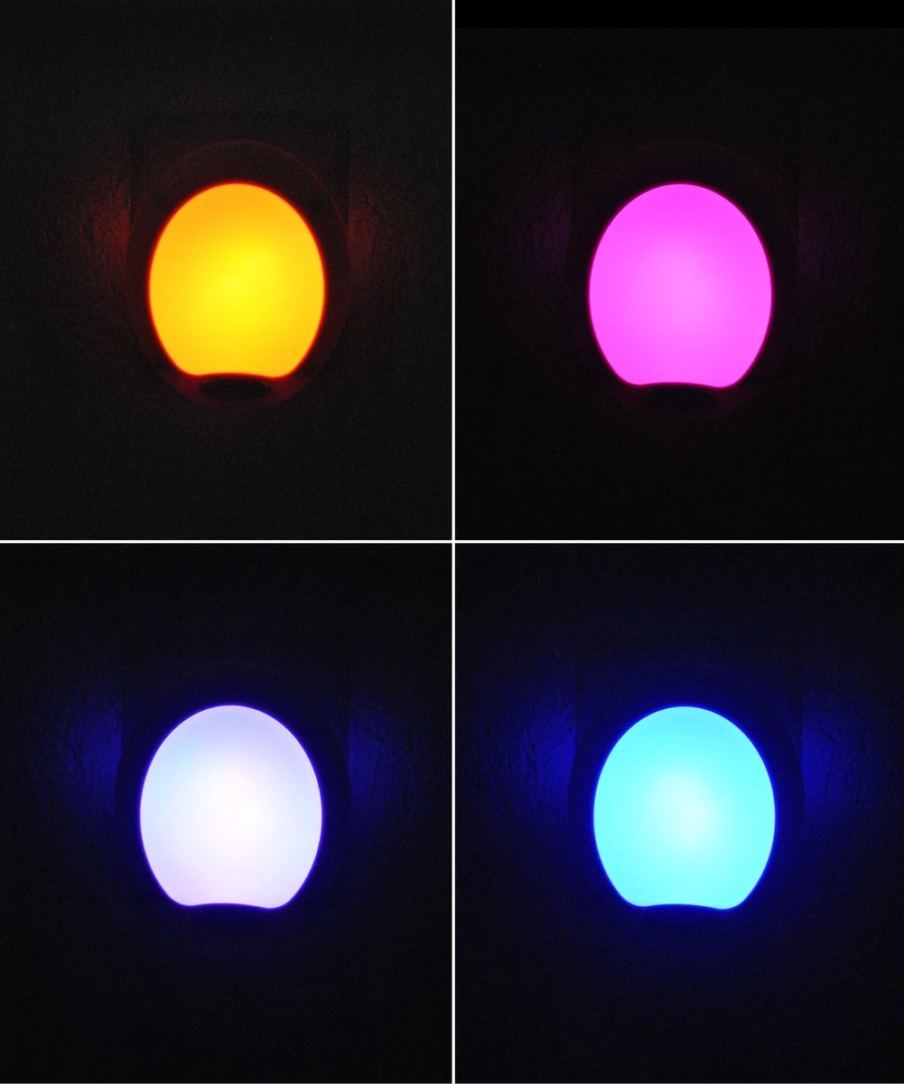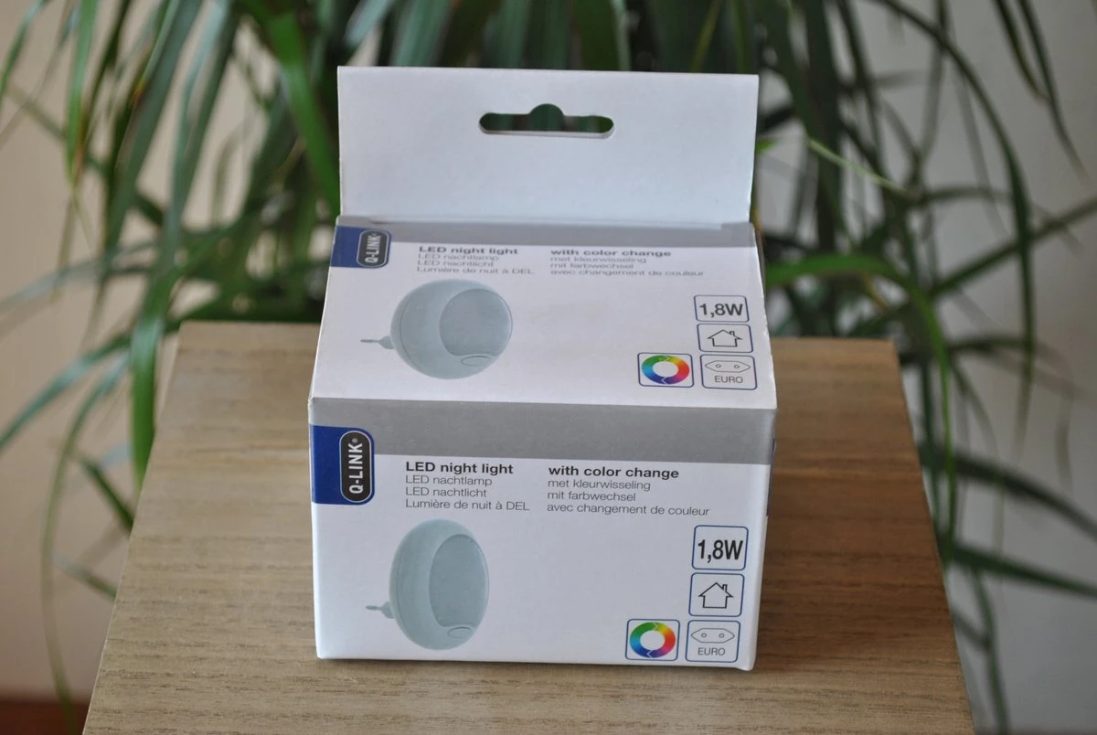 Het zachte licht van dit nachtlampje is in te stellen in alle kleuren van de regenboog.