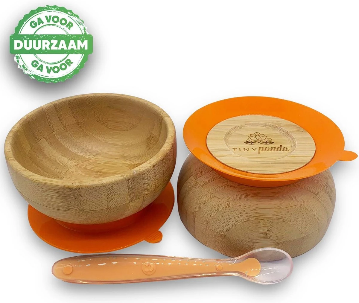 - 1x Bamboe baby kom met afneembare siliconen zuignap