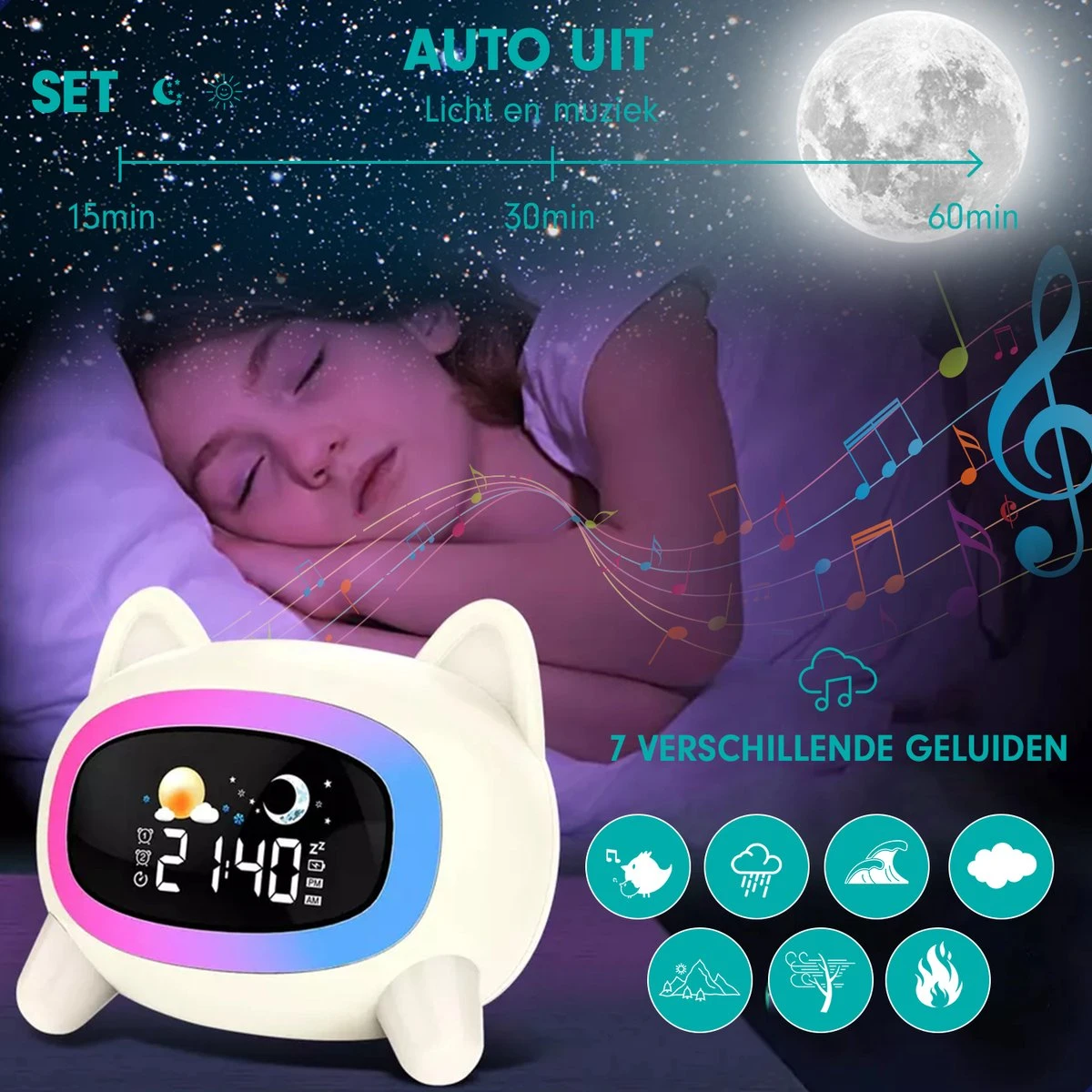 De slaaptrainer bevat 7 verschillende slaapgeluiden die het in slaap helpen van jouw kind kunnen stimuleren. Zo bevat de slaaptrainer over de volgende geluiden: Regen, piano, vuur, golven en Vogels. Rustgevende geluiden van het water, de regen, white noise. Het is mogelijk om in te stellen dat het geluid na 15, 30 of 60 minuten automatisch wordt uitgeschakeld.
