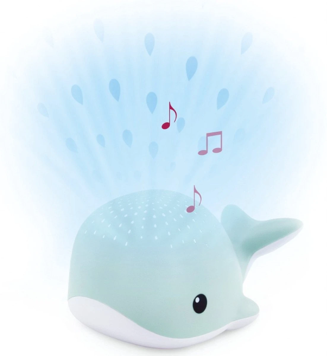 Wally projecteert waterdruppels in verschillende kleuren (blauw, groen, rood óf regenboogkleuren) tegen het plafond. Daarnaast speelt Wally drie verschillende melodieën, namelijk oceaan geluidjes, hartslag én slaapliedjes. Altijd een kleurtje en een geluidje dat bij jouw kindje past.